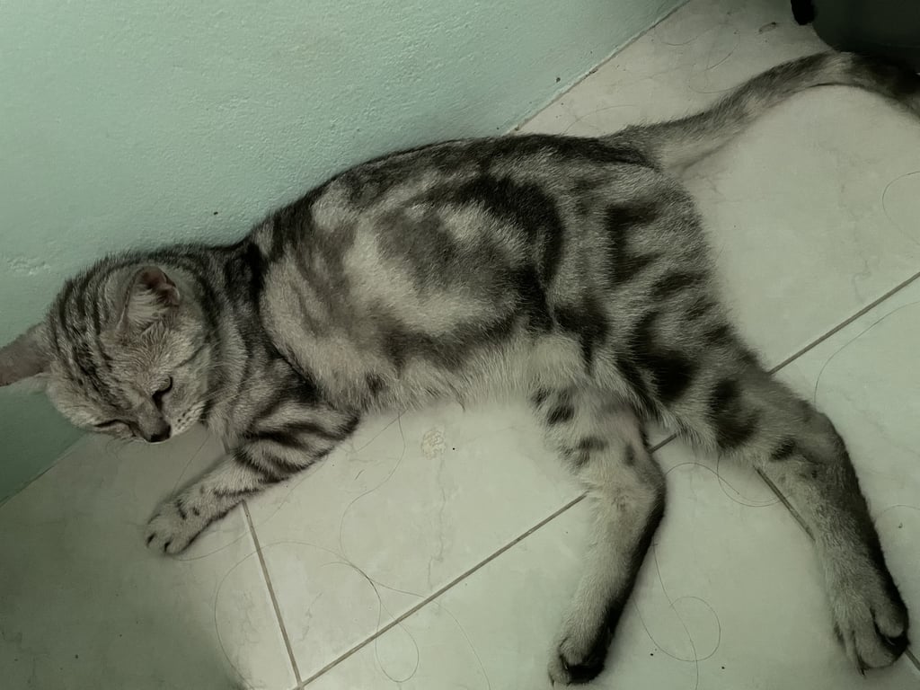 รอยตำหนิ: มีน้ำตาบริเวณตาซ้าย หางไม่ค่อยมีขน อยู่ในช่วงผลัดขนชอบเข้าหาคน แต่มีนิสัยตกใจเล็กน้อย เชื่องกับคนมาก