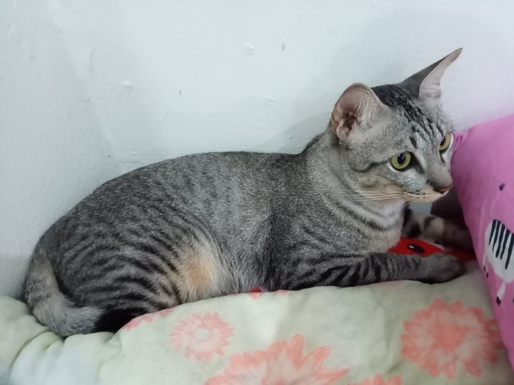 รอยตำหนิ: หางกุด ตาสีเหลือง ตาดำเล็กอายุประมาณ 1 ปี 5 เดือน