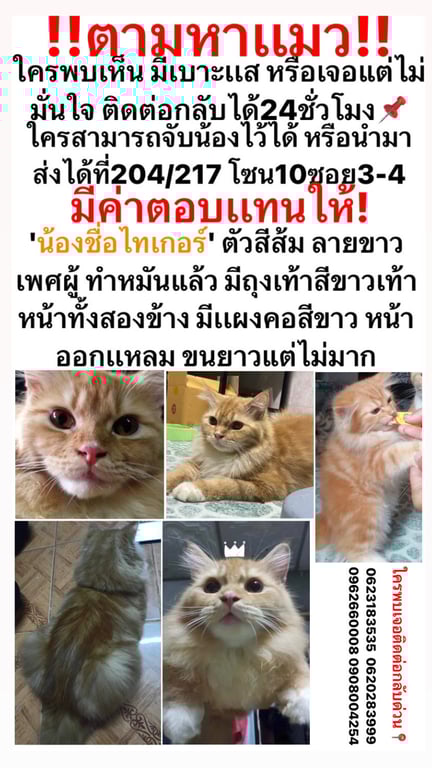รอยตำหนิ: มีถุงเท้าสีขาว เท้าหน้าทั้งสองข้าง ใบหูข้างขวามีขนเเหว่ง เเผงคอสีขาว1ปี 5เดือน