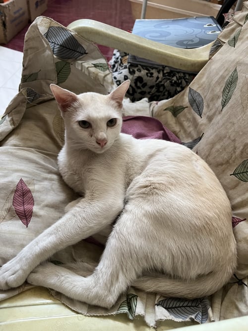 สี: สีขาว ด้านหลังมีขนแซมสีเหลืองเล็กน้อย
