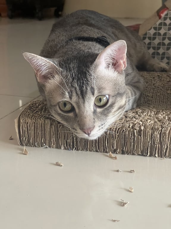รอยตำหนิ: ช่วงเอวและหัวจะมีรอยแหว่งนิดหน่อยเป็นแมวที่ค่อนข้างจะติดเจ้าของ จะร้องเมื่อหาเจ้าของหรือแมวพี่ของมันไม่เจอ ชอบกินอาหารเปียก ไม่ค่อยกลัวคน ไม่กัด ขี้อ้อน