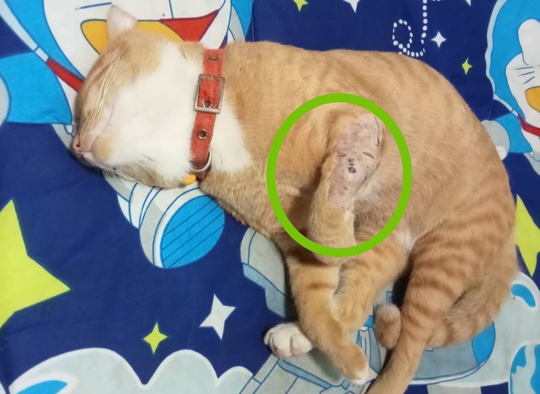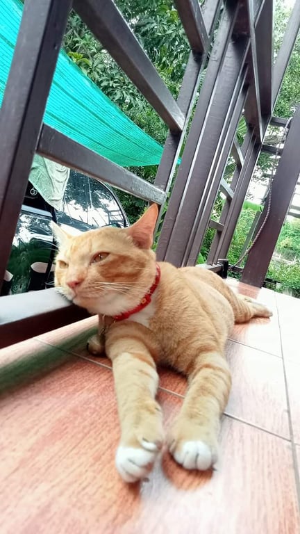 รอยตำหนิ: รูปร่างไม่อ้วน ลำตัวยาว หางยาว มีรอยแผลที่ขาหน้าข้างซ้าย (โกนขน ทำแผล)ไม่ดุร้าย เชื่องคน อายุประมาณ1ปี 3เดือน