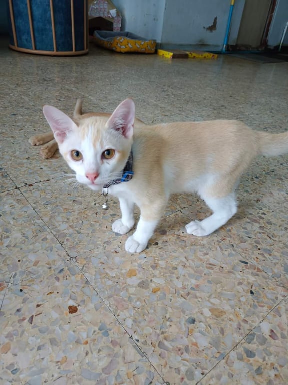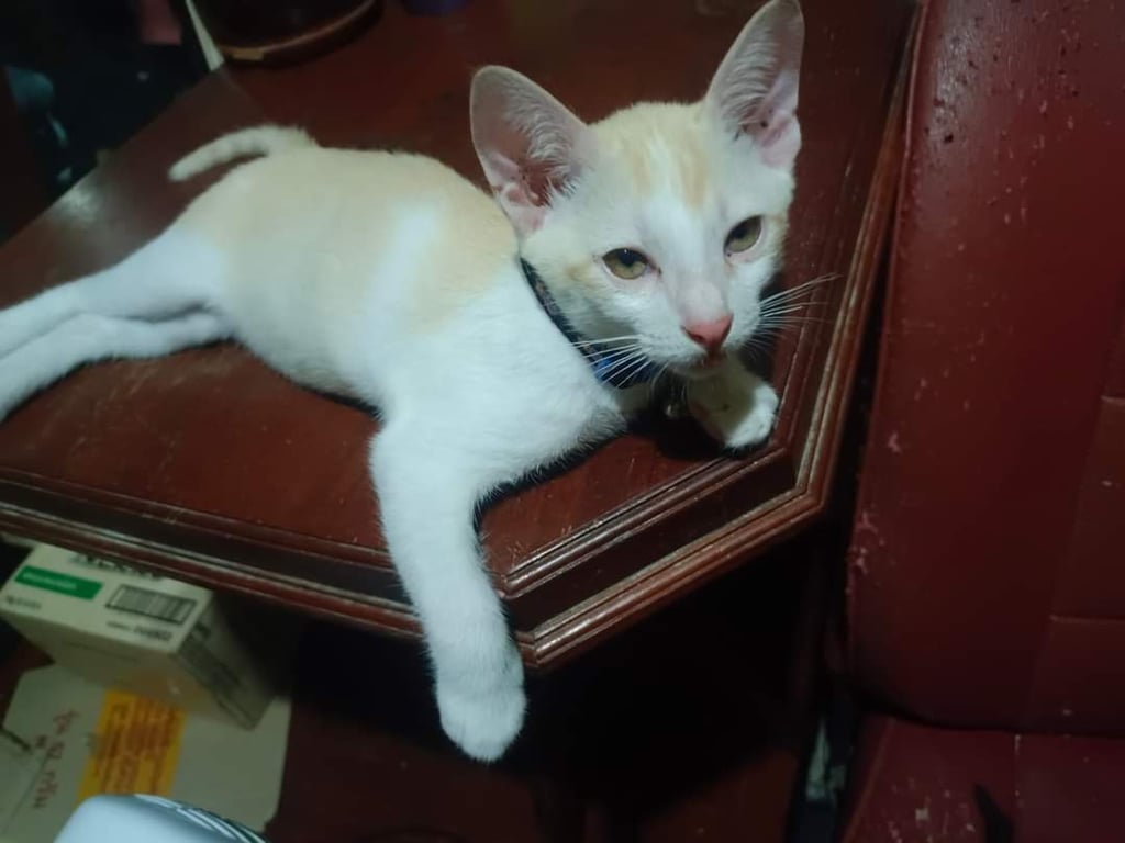 รอยตำหนิ: เขี้ยวหักด้ายซ้าย ปลายหางงอนิดหน่อยขี้อ้อน ขี้กลัว ชอบนอนใต้รถ