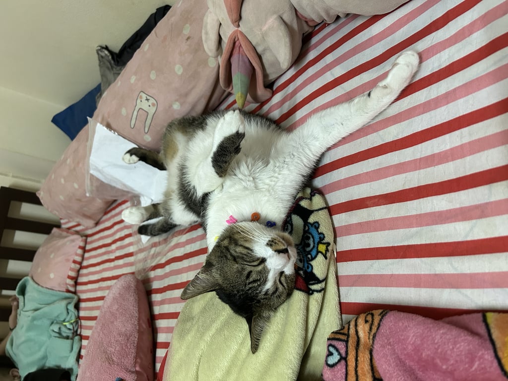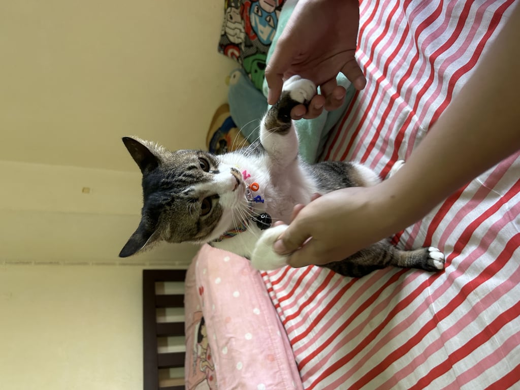 รอยตำหนิ: จมูกมีลายเปื้อนสีดำด้านซ้ายนิสัยมึนๆ ไม่ค่อยสุงสิงกับใคร ไม่ค่อยร้องถ้าไม่รำคาญ ไม่ดุ ชอบดมกลิ่นแปลกๆ