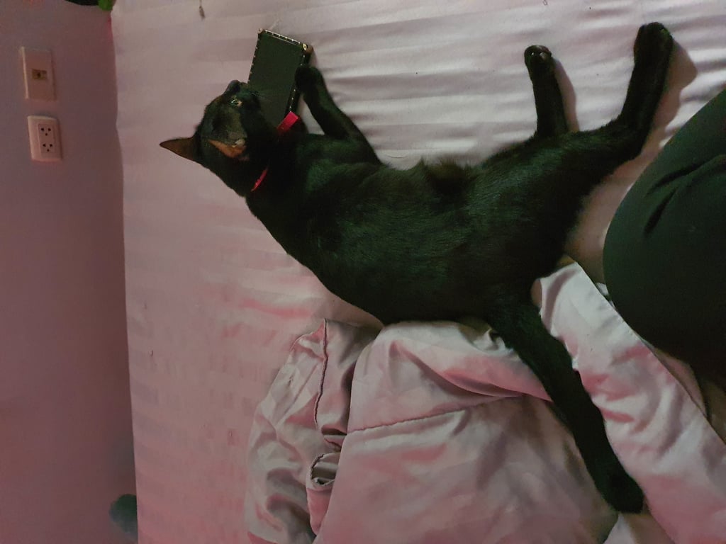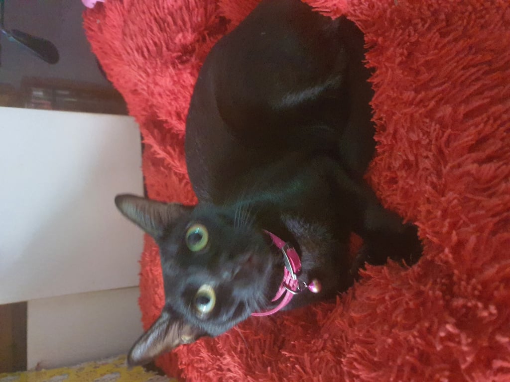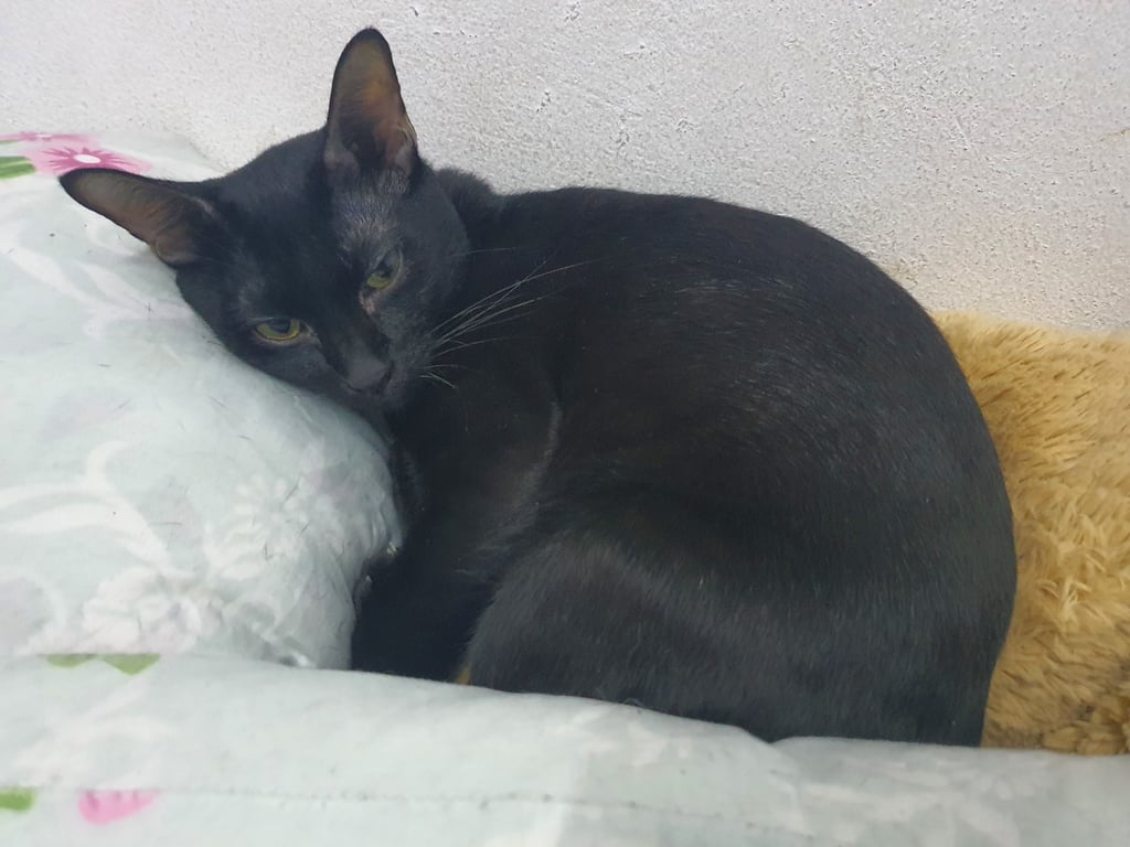 รอยตำหนิ: หางตรง แต่เมื่อจับหาง กระดูกตรงปลายหางจะขดเล็กน้อยลักษณะแมว (สีนิล) : สีนิลมีขนสีดำสนิททั้งตัว ตาสีเหลืองโตกลมวาว ขนบริเวรโหนกตาจนถึงหูจะมีขนที่บางมากๆ หางตรงแต่กระดูกตรงปลายหางจะขดงอเล็กน้อย พุงย้อย ชอบส่องหน้าต่างดูนก จิ้งจก นิสัย : ขี้อ้อน หวงและติดเจ้าของมากๆ ชอบให้เกาหู เกาพุง ชอบมานอน มาอยู่ใกล้ๆเจ้าของตลอดเวลา หากไปนอนแล้วตื่นมาไม่พบเจ้าของจะแหกปากร้องเหมือนเด็กเรียกหาแม่ตอนตื่นมาไม่เจอใคร สีนิลเรื่องมากในการกินเปลี่ยนอาหารไม่ได้ต้องยี่ห้อเดิมตลอด ไม่อย่างนั้นจะประท้วงไม่กินข้าว หากมีแมวใหม่เข้ามาจะขู่และไม่เข้าใกล้สักประมาณ 1-2 อาทิตย์ ถึงจะยอมรับตัวใหม่เข้าฝูง