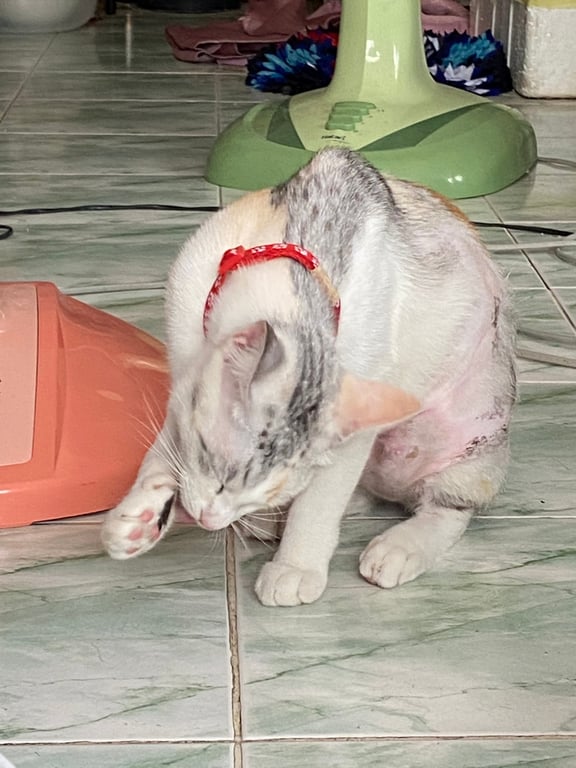 รอยตำหนิ: แผลน้ำร้อนลวกข้างซ้าย/และขาหลังหน้าผากมีสองสี