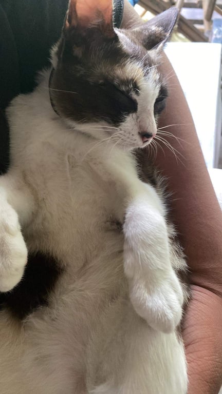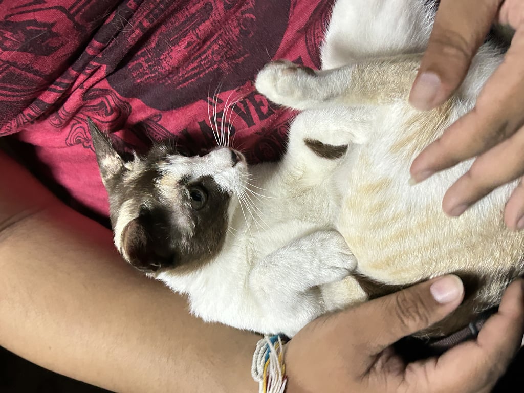 รอยตำหนิ: จุดสีดำที่จมูกน้องค่อนข้างกลัวหมา ขี้กลัว ชอบเลียแต่ขน