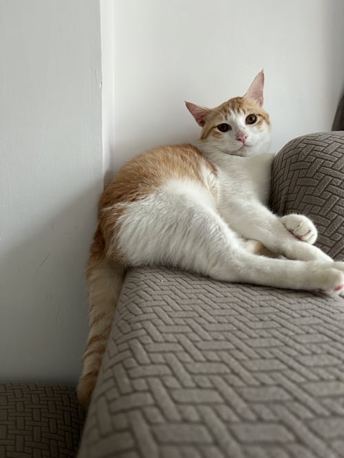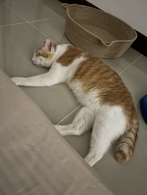 รอยตำหนิ: สีส้มหัว หลัง หาง /สีขาวตั้งแต่ คาง พุง ขา หางพองสั้น กลมๆขี้ตกใจ เวลาเดินทางน้องจะยาวกว่าปกติ เหมือนข้อหัก น้องสามารถจับได้เป็นมิตร