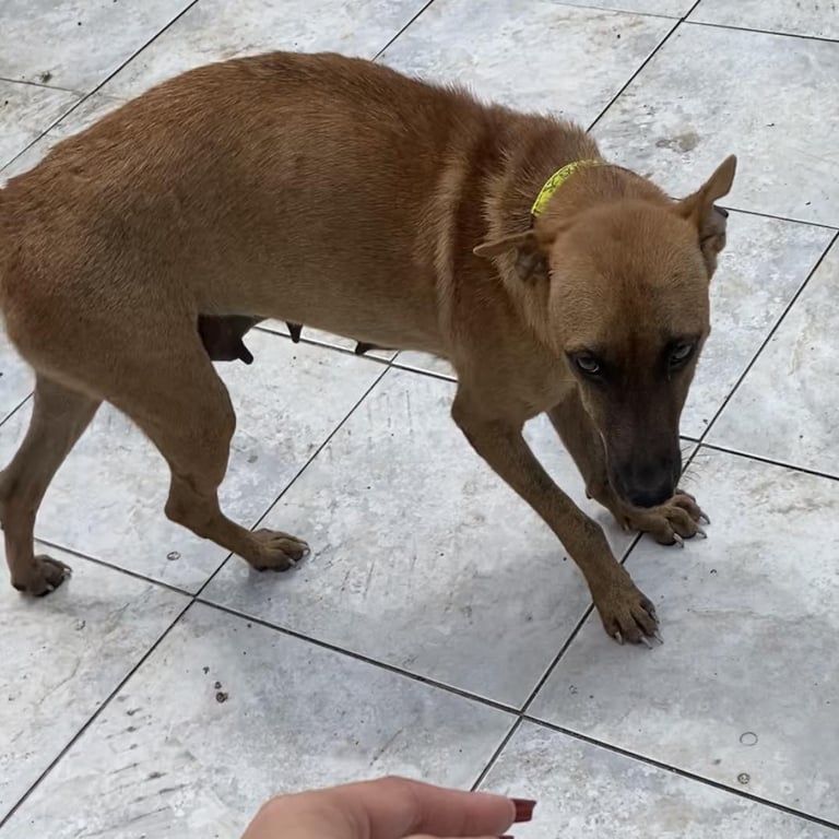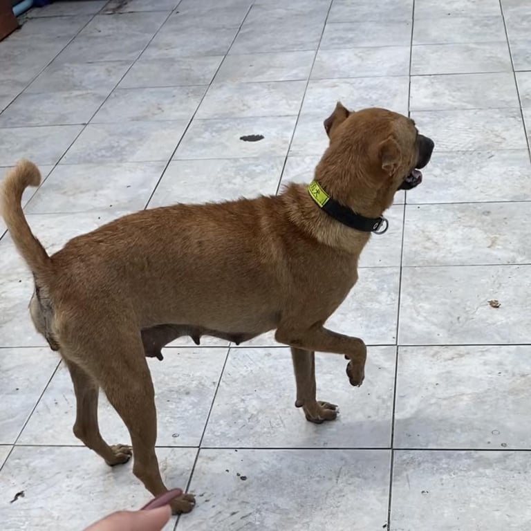 รอยตำหนิ: ขาหน้าขวาน้องเจ็บ น้องจะเดินยกขาน้องใส่ปอกคอสีเขียว ขาหน้าขวาน้องเจ็บ น้องจะเดินยกขานะคะ น้องขี้ระแวง น้องไม่ดุ