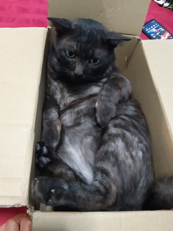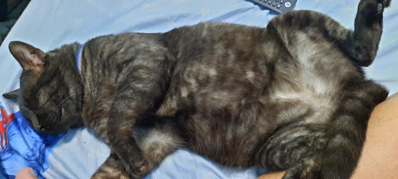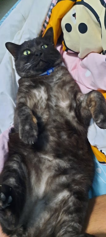 รอยตำหนิ: หางตรง ตัวอ้วนถ้าเรียกอ้วนๆ เขาจะตอบอ๊าบบบ แบบขานรับ เชื่องบางครั้งก็ตบ ป่วยเป็นลูคิเมีย ตัวใหญ่หนัก 6 โล สีขนดำๆเทา หางยาวตรง ปลอกคำสีฟ้าๆน้ำเงินๆค่ะ