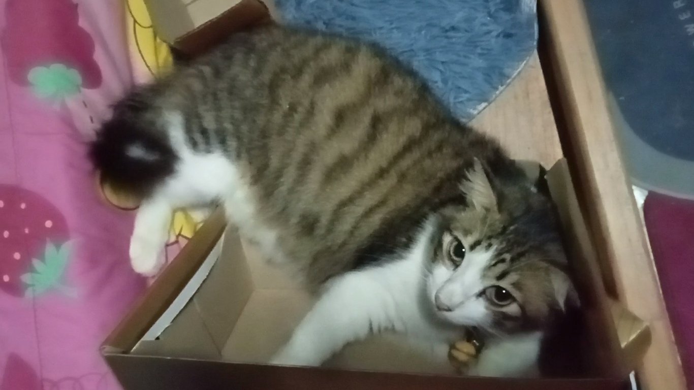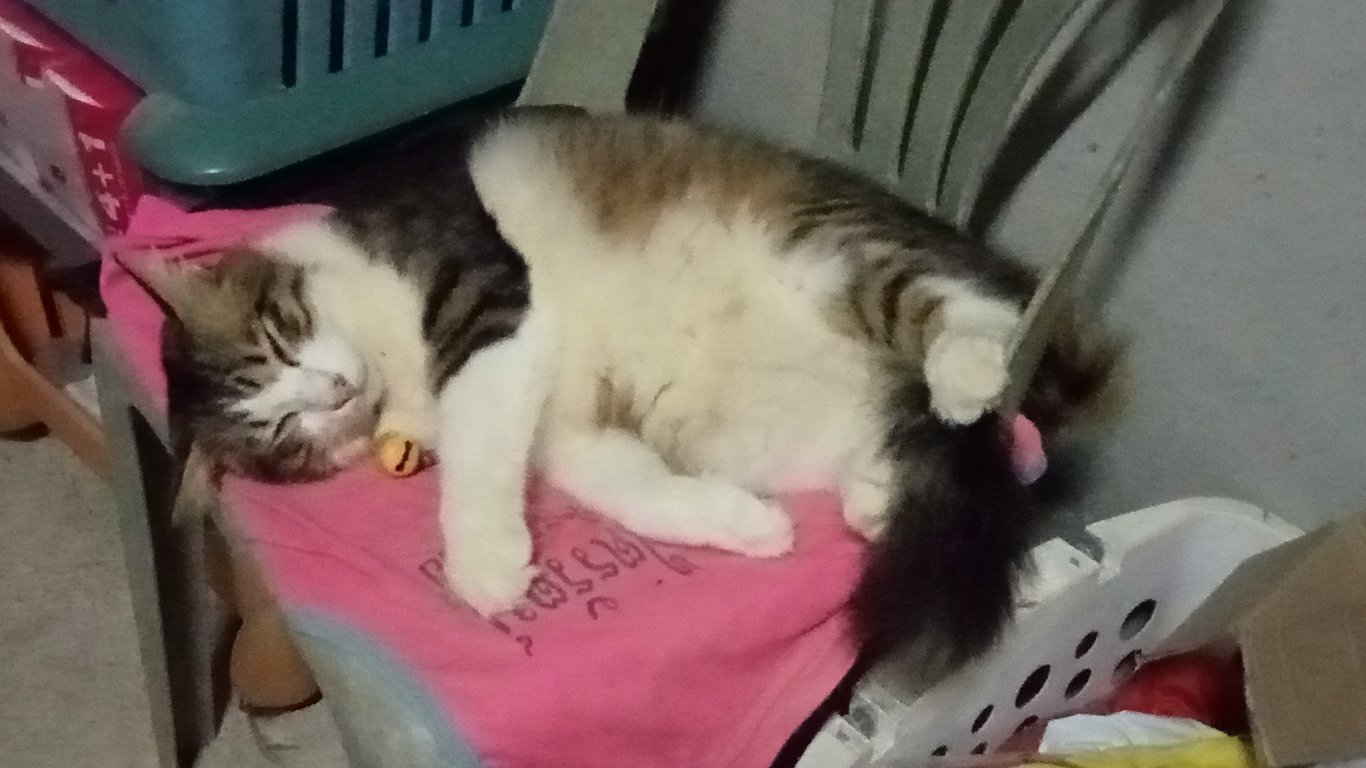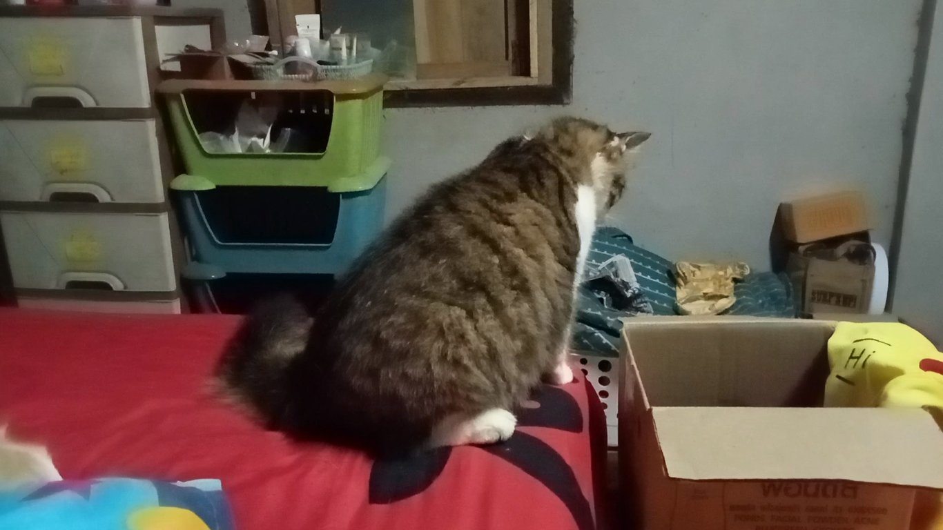 รอยตำหนิ: แต้มสีขาวหลังกกหูขวากับปลายหาง แต้มดำตรงขาหลังขวาน้องตัวอ้วน หางฟู ขาจะสั้นๆหน่อย หน้าและหัวเล็กๆ อ้อนกินเก่ง รักอิสระ ชอบน้อนนิ่งๆ หรือเดินช้าๆ ไม่ค่อยชอบให้คนอุ้มแต่ถ้าจับอุ้มแล้วน้องจะนิ่งมาก มีแค่เสียงขู่เบาๆ ไม่กัด เสียงร้องเบามาก
