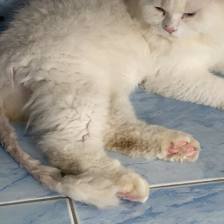รอยตำหนิ: ที่หางน้องจะไม่ค่อยมีขน เพราะโกนขนออก / ไม่ใส่ปลอกคอน้องจะกลัวคน ไม่ค่อยให้ใครจับ
