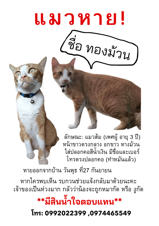 รอยตำหนิ: อกสีขาว หางม้วนเป็นปมไม่ให้จับง่ายๆ หวงตัว