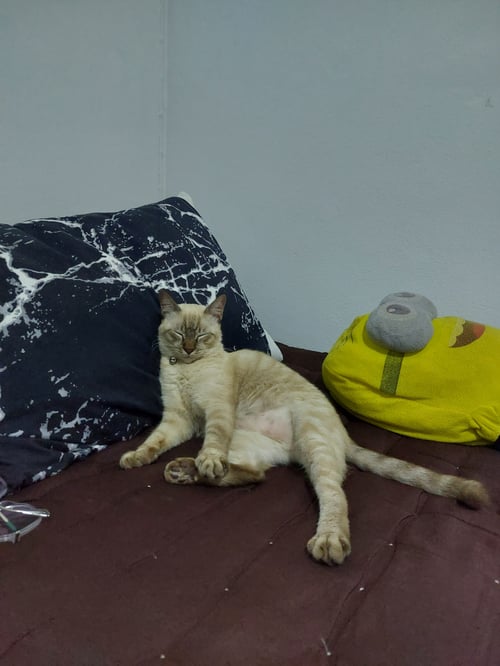 น้องไม่ค่อยเป็นมิตรกับแมวตัวอื่นเลย จะชอบอยู่แบบสันโดษ แต่จะชอบมานอนกับคนตอนที่ง่วง น้องจะชอบขู่ถ้าเจออะไรที่ไม่พอใจ ถ้าจะเรียกให้มาหาจะต้องล่อด้วยขนมแมวเลียเท่านั้น