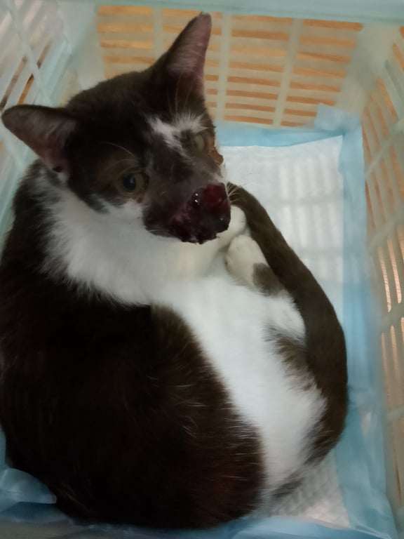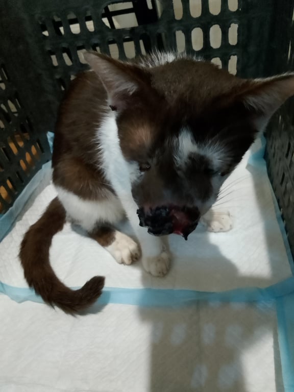 รอยตำหนิ: น้องเป็นแผลที่จมูกและติ่งใบหูสองข้างน้องน้ำตาลเป็นแมวจรที่เราไปรับช่วยมารักษาตัวจากสมุทรสาคร ตอนนี้น้องป่วยคริปโต กำลังกินยาหาหมอค่ะ