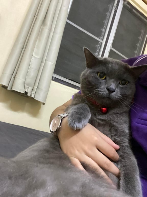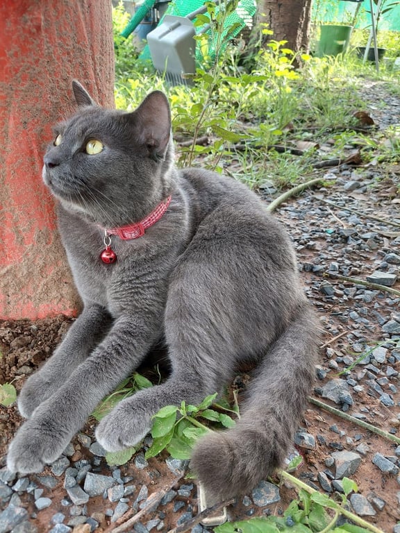 รอยตำหนิ: ตาข้างซ้ายมีตำหนิจุดสีน้ำตาลเหลืองหนึ่งจุดที่ตาข้างซ้าย หางยาวปลายหางจะหักงอน้องใส่ปลอกคอสีแดง ติดเล่น จะขี้กลัว แต่ถ้าเอาอะไรมาล่อก็ไปตาม