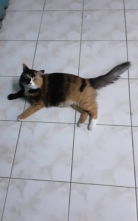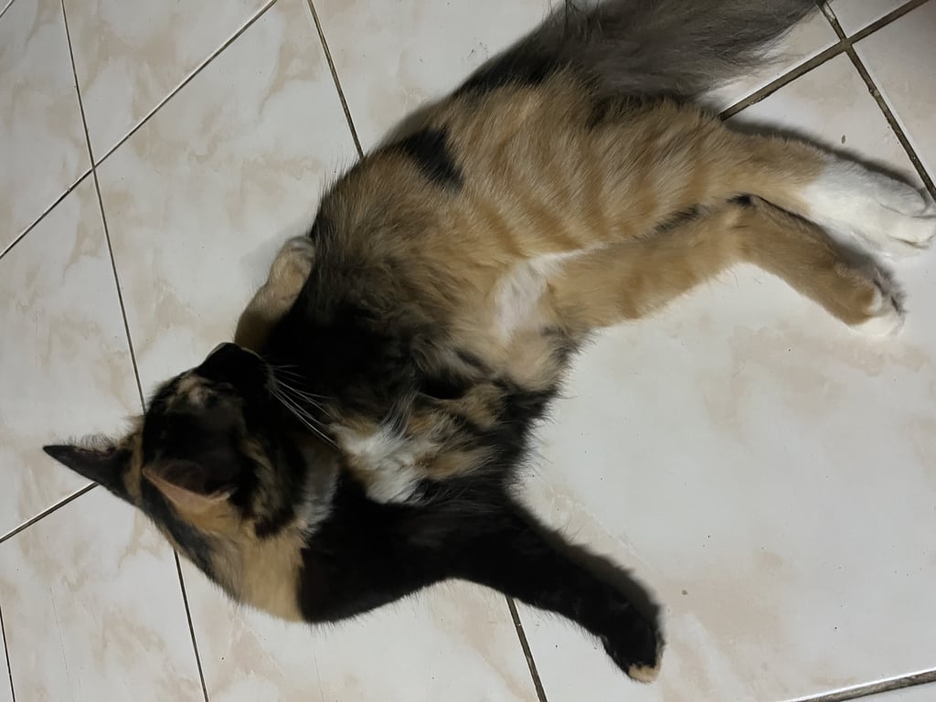 รอยตำหนิ: ขาหน้าข้างนึงสีดำ ข้างนึงสีส้มหัวเล็ก ตัวใหญ่ หางฟู