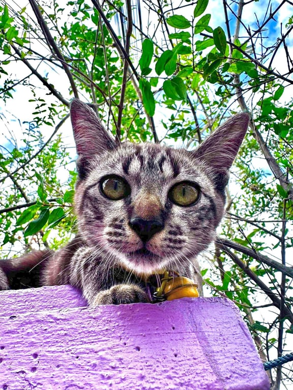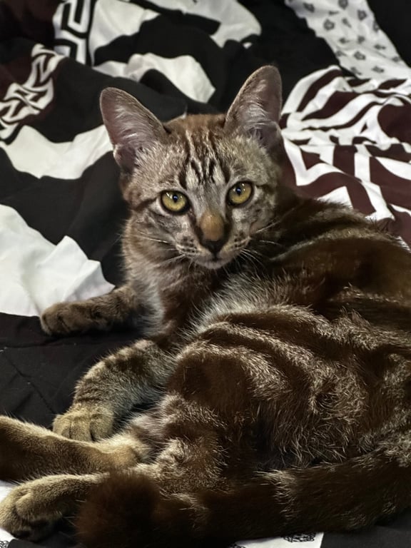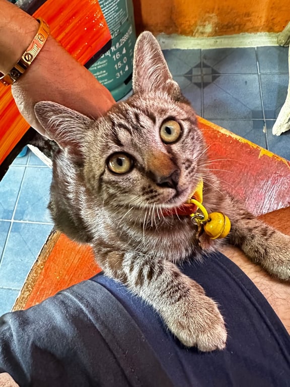 รอยตำหนิ: สีน้ำตาลลายขาว หางกวัง ปลอกคอสีส้ม