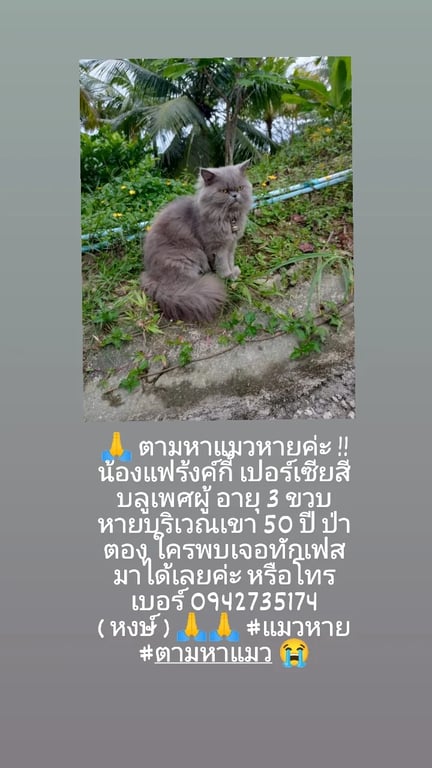 รอยตำหนิ: เขี้ยวหักบริเวณเขา 50 ปี ป่าตอง จ.ภูเก็ต ใครพบเจอทักมาได้เลยค่ะ หรือโทรเบอร์ 0942735174 ( หงษ์ ) 🙏🙏
