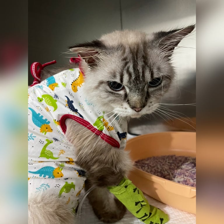รอยตำหนิ: ใต้ท้องน้องมีรอยแผลผ่าตัดยาวน้องไม่ชอบคนจับตัวถ้าอุ้มจะดิ้นหนีเลย เวลาทานอาหารจะต้องทานคนเดียวจะไม่กินร่วมกันคนอื่น น้องทานอาหาเม็ด มีโอ รสทะเล เท่านั้น อาหารเปียกจะกินปลาแบบชิ้น น้องมีตาสีฟ้า มีรางวัลให้ผู้พบเห็นจับน้องไว้ให้ 2000 บาท