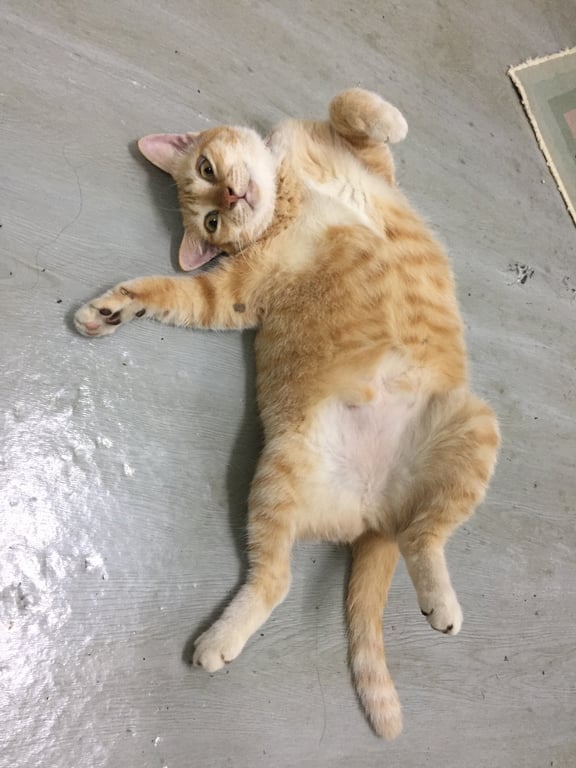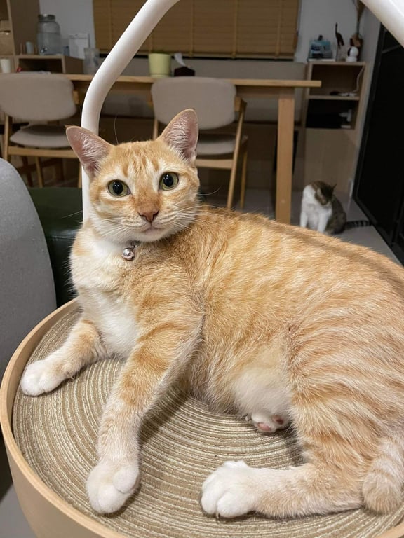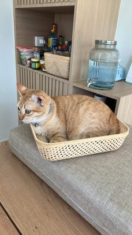 รอยตำหนิ: ใบหูด้านซ้ายมีขาดแหว่งเล็กน้อยน้องกลัวรถใหญ่ เสียงดัง, ชอบเดินเข้ามาถูขา, ร้องเวลาหิว