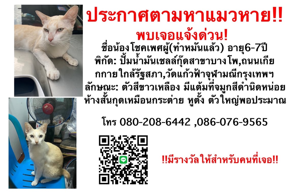 รอยตำหนิ: หางกุดสั้นนิสัยกลัวคนง่าย กลัวเสียงดัง เช่น พลุ,ปืน,ฟ้าร้อง เข้ากับแมวตัวอื่นไม่ค่อยได้ จะดุกับคนแปลกหน้าถ้าเข้าหาน้องดีๆก็ไม่กัดไม่ดุค่ะ