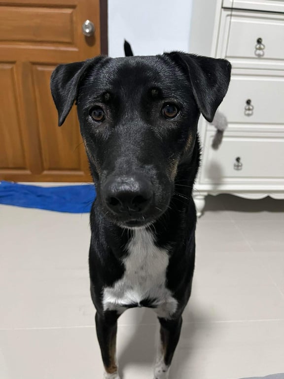 รอยตำหนิ: ใต้คอสีขาว ขาคู่หน้าสีขาว ขาคู่หลังสีน้ำตาลไม่ดุร้าย เฟรนลี่