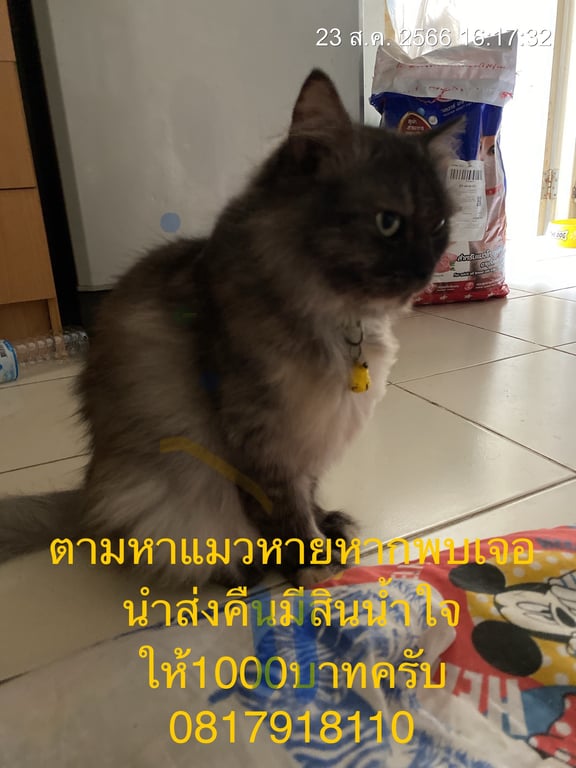 รอยตำหนิ: สีขนที่คางจะแบ่งเป็น2ซีกปลอกคอมีกระดิ่งสีเหลือง