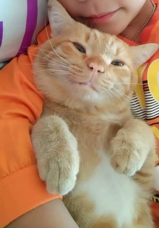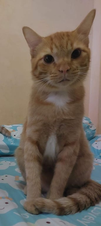 รอยตำหนิ: สีส้ม บริเวณหน้าอกมีสีขาว ใต้ท้องแขนมีสีขาว หางยาวไม่ขอด ตากลม แก้มอ้วนก็ขี้อ้อน กลัวคนแปลกหน้า
