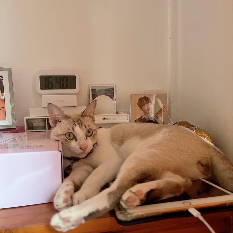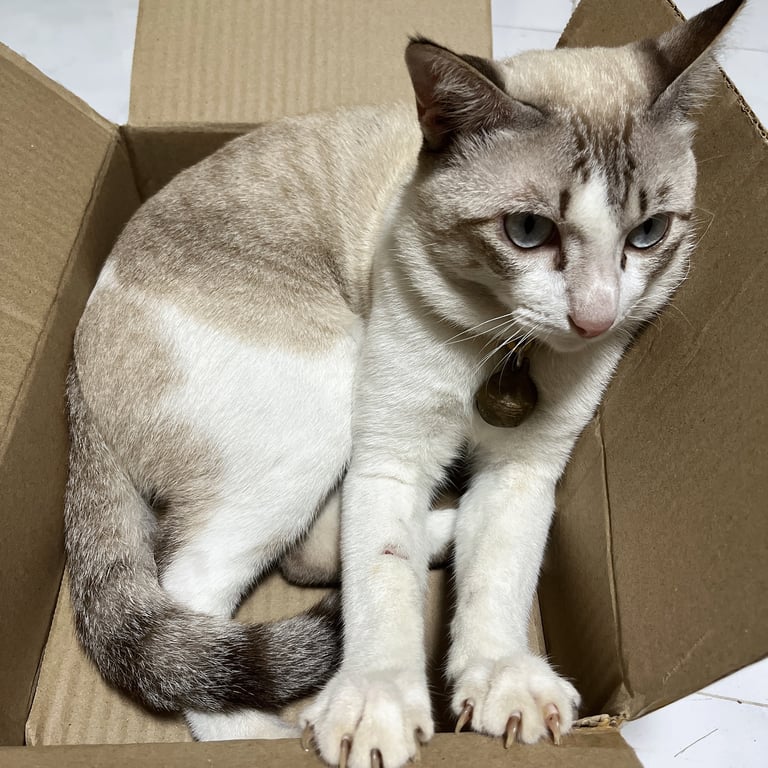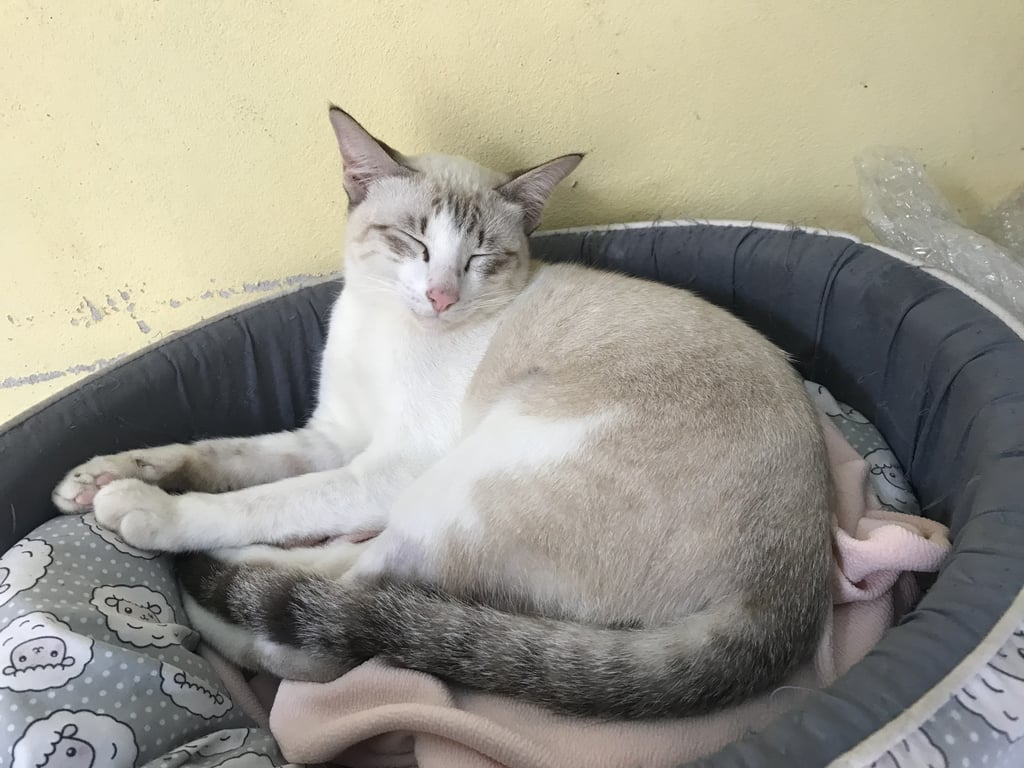 รอยตำหนิ: มีรอยแต้มสีเทาดำตรงขาหน้าขวาขี้เล่น เชื่องเข้ากับคนง่าย