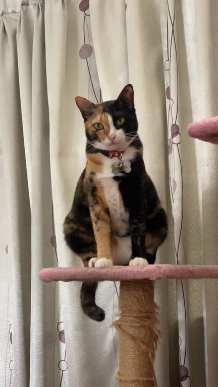 รอยตำหนิ: มีแสกหน้าสามสีกลางหน้า พุงห้อย รู้จักชื่อตัวเองรู้จักชื่อตัวเอง ไม่กินอาหารคน กินแค่อาหารเม็ดกับอาหารซอง หวั่นไหวกับเสียงเทอาหารมาก เชื่อง ตัวไม่ใหญ่แต่พุงห้อย น้ำหนัก 4 กิโลกรัม