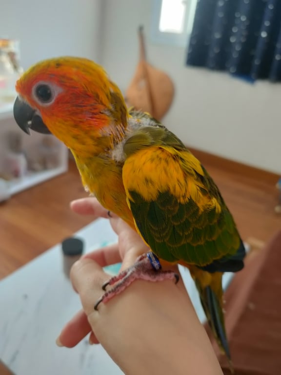รอยตำหนิ: มีห่วงขา2ข้าง สีแดง สีน้ำเงิน มีชื่อน้อวติดพร้อมเบอร์เจ้าของน้องกินเองยังไม่เป็น