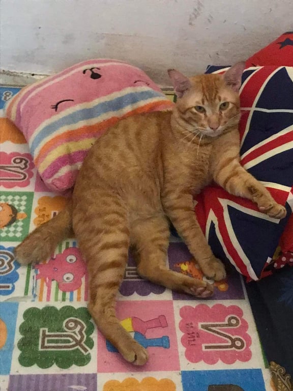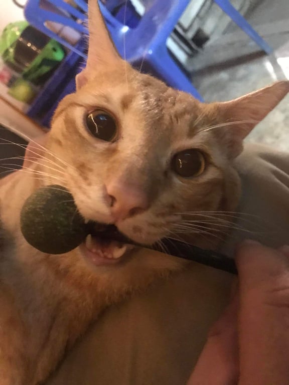 รอยตำหนิ: หางครึ่งท่อน มีแผลใต้ปากน้องชอบปลาทู เป็นแมวขี้อ้อน แต่ขู่บ้างหากไม่คุ้มชิน และขี้กลัว