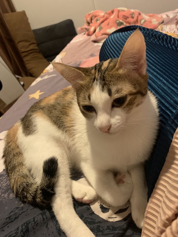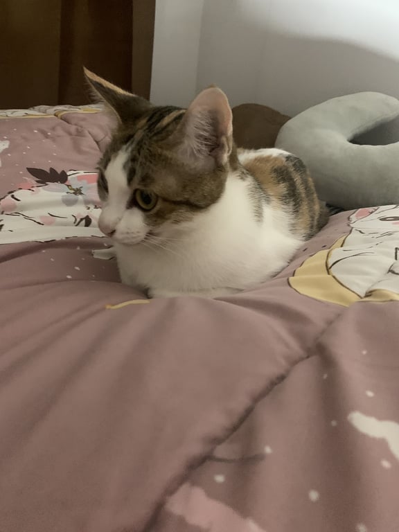 รอยตำหนิ: ปากบนซ้ายแหว่ง , มีสีดำที่ขาหลังซ้ายนิสัยขี้กลัวมากกกกกกก หลบตามซอกตามมุม ไม่เดินเพ่นพ่าน กลัวคน