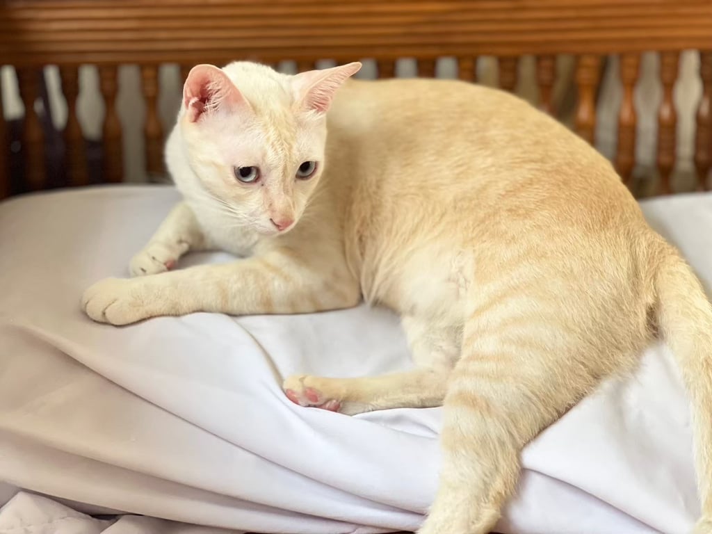 สี: สีขาวครีม ตัวอ้วน ลำตัวมีลาย