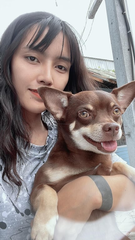 รอยตำหนิ: ตาเป็นต้อ1ข้าง สีน้ำตาล ชิวาว่าผสมน้องไม่ค่อยคุ้นคน ชอบขึ้นรถยนต์ ไม่ดุค่ะ