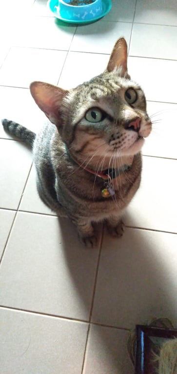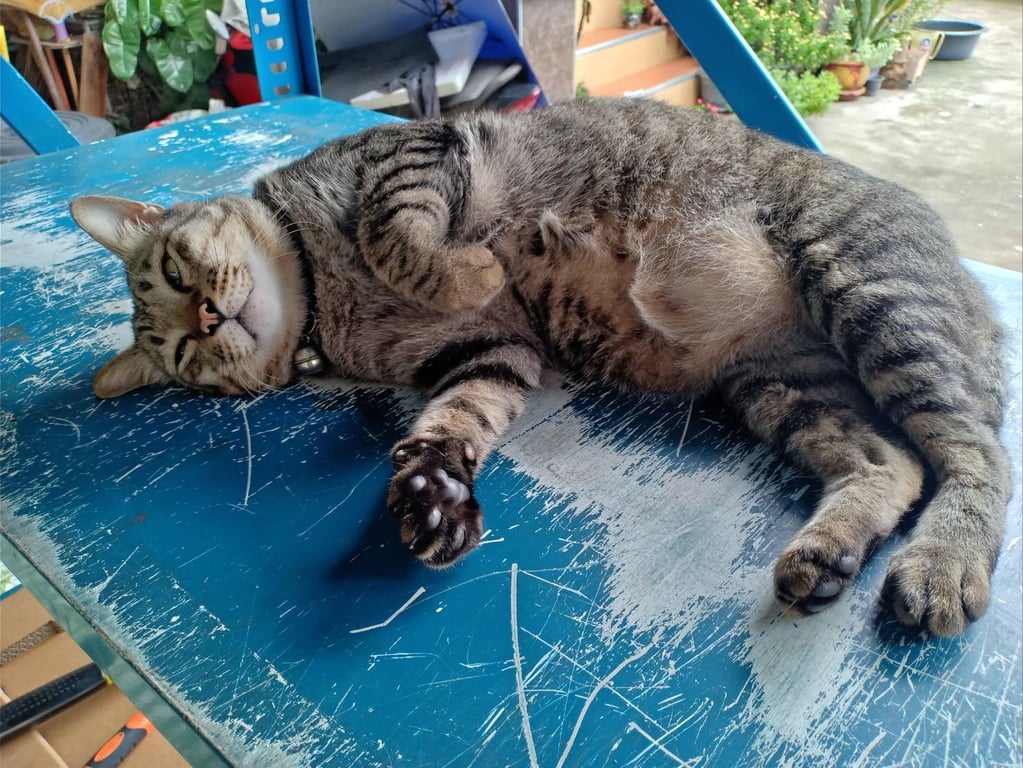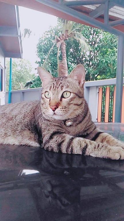 รอยตำหนิ: ตัวใหญ่มาก อ้วน ตาสีเหลือง-เขียว อายุมาก รู้ชื่อตัวเองรู้ชื่อตัวเอง เรียกแล้วมาหา ฉลาด ข้ามถนนเป็น เชื่อง ไม่กัด แมวลายสลิดสีเทาเป็นลายทั้งตัว หายไปแถววัดบางปรงเมื่อเดือนมกราคม 2565 ไม่ทราบอายุ แต่มากกว่า 7 ปีขึ้นไป