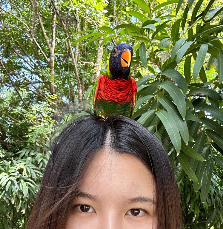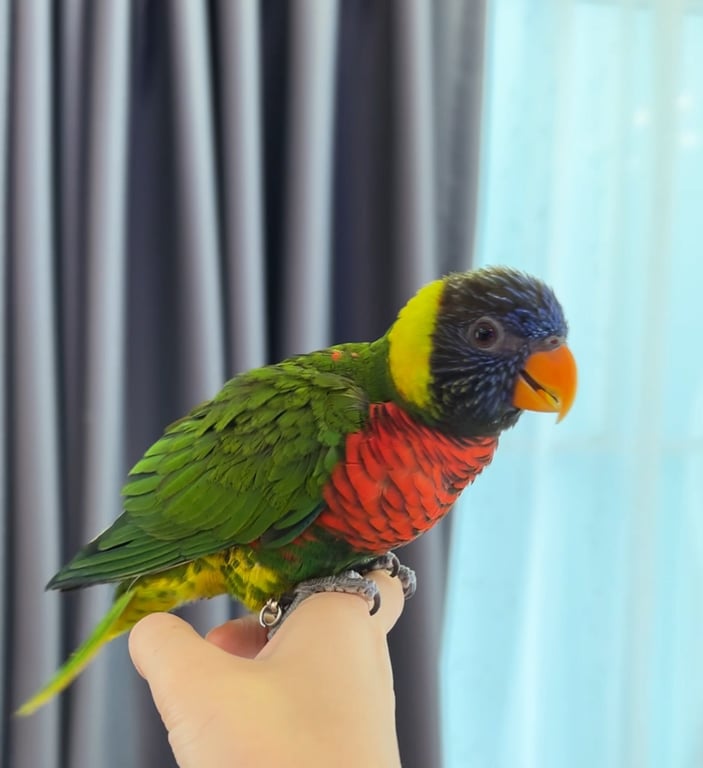 สี: ตัวสีเขียว หัวสีน้ำเงิน ท้องสีแดง