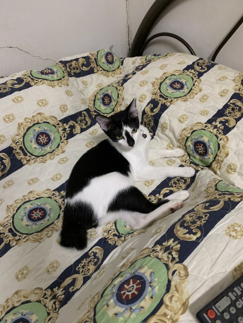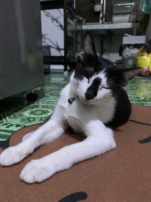 รอยตำหนิ: หางงอ มีขีดดำตรงจมูก ปลอกคอสีแดงนิสัยขี้เล่น ชอบวิ่งพุ่ง ชอบปีนป่าย ขี้สงสัย