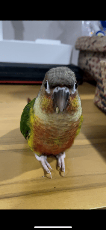 สี: น้องผสมพายแอปเปิ้ล เค้าจะไม่ใช่กรีนชีคหัวดำ สีเทา ขอบตาติดแดง แผงอกส้มแดงชัด