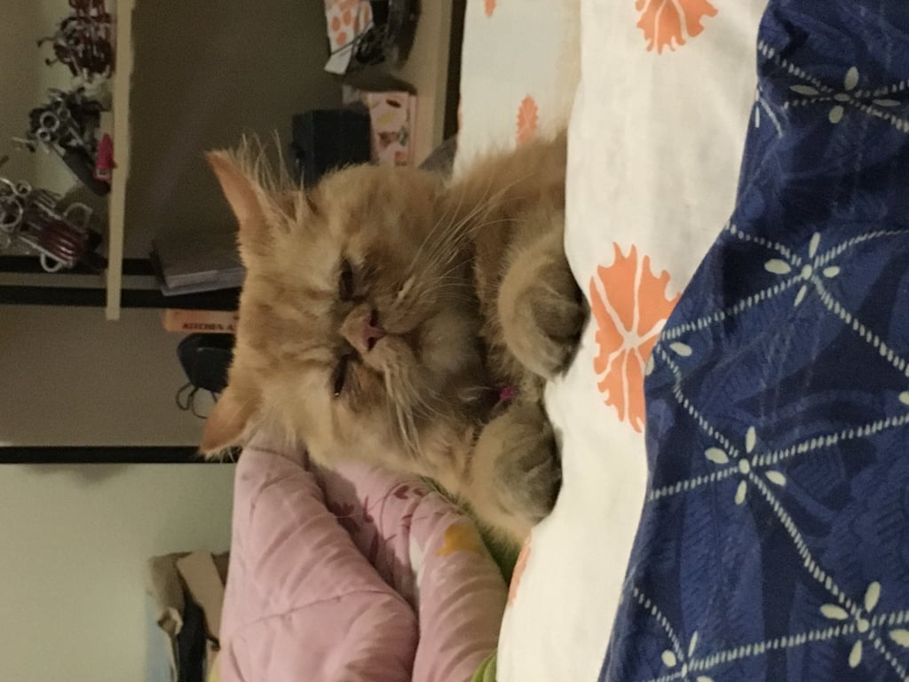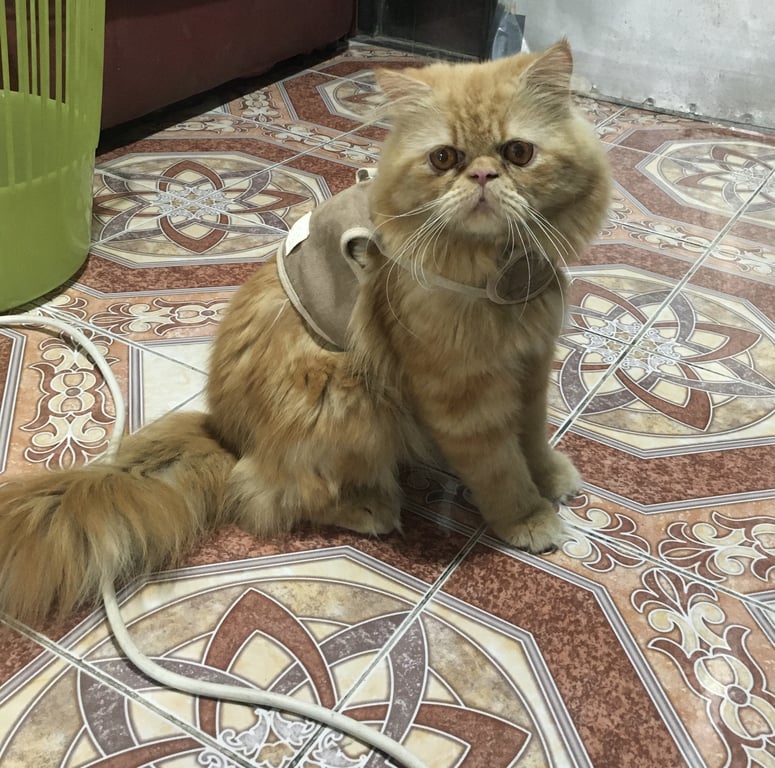 รอยตำหนิ: ตาสีเหลือง มีน้ำตาแฉะที่ตาอยู่ตลอด ที่ลำตัวมีลวดลายชัด น้ำหนัก 4 กิโล มีนิสัยชอบสำรวจ แต่ระวังตัวไม่ชอบถูกอุ้มปล่อยให้น้องออกไปเดินเล่นใกล้ๆบ้าน 2 วันครั้งซึ่งน้องจำบ้านได้จะกลับบ้านมาเองทุกครั้ง ล่าสุดออกไป 1 ชม.นานจนต้องตามหาแต่ไม่เจอ