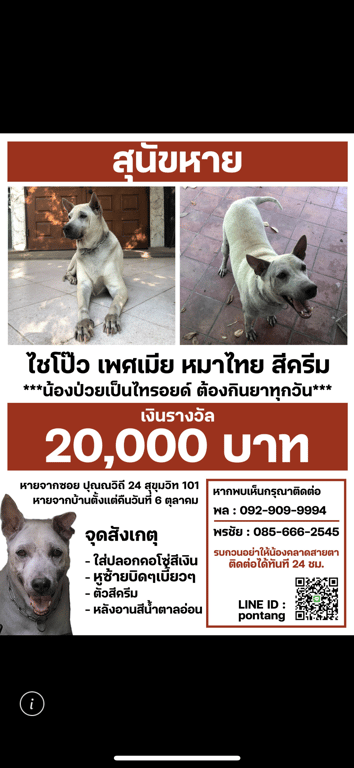 รอยตำหนิ: หูซ้ายหงิก หางเหมือนหางหนู