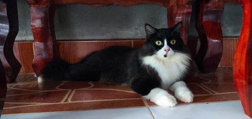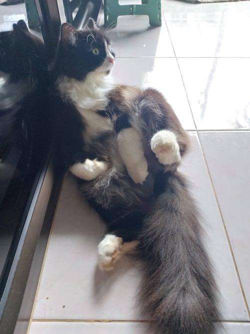 สี: ตัวดำ ปาก คาง(มีจุดดำเหมือนเครา)ท้องขาว ใส่ถุงเท้าสีขาว4ขา