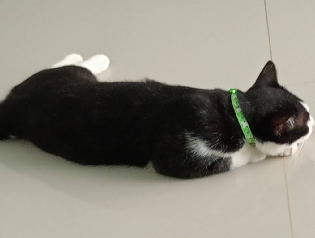 รอยตำหนิ: เขี้ยวข้างขวา(มองจากหลังแมว)หักเกือบครึ่งหนึ่ง