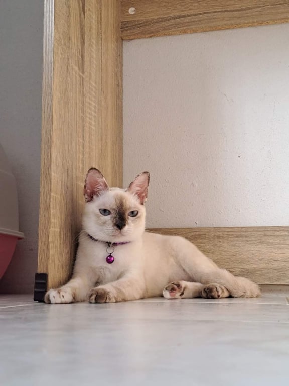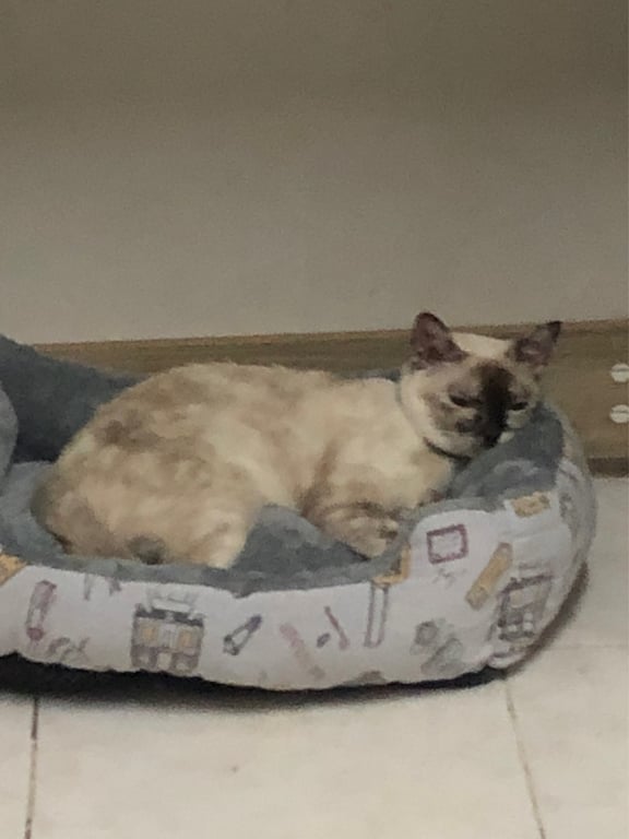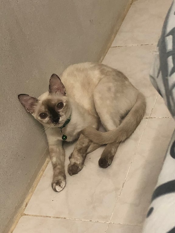 รอยตำหนิ: ใต้เท้าหน้าจะแบ่งทูโทนดำ-ชมพู จมูกขาวข้างดำข้างหายเมื่อวันที่ 8 มีนาคม 2566 บ้านท้ายซอยในตลาดท่าข้ามริมน้ำ มีนิสัย : ขี้กลัวมาก กลัวคนแปลกหน้า ขี้อ่อน เป็นแมวที่ไม่ร้องเลย จะร้องแค่ว่า แอ๊ะ! คำเดียว ชอบทำหน้าเหมือนเมา เหมือนง่วงตลอดเวลา ชอบเกาะขา ชอบให้หอมแก้ม ไม่ว่าจะเจอแมวแปลกหน้ายังไงก็เป็นมิตรกับเค้าไปหมด...