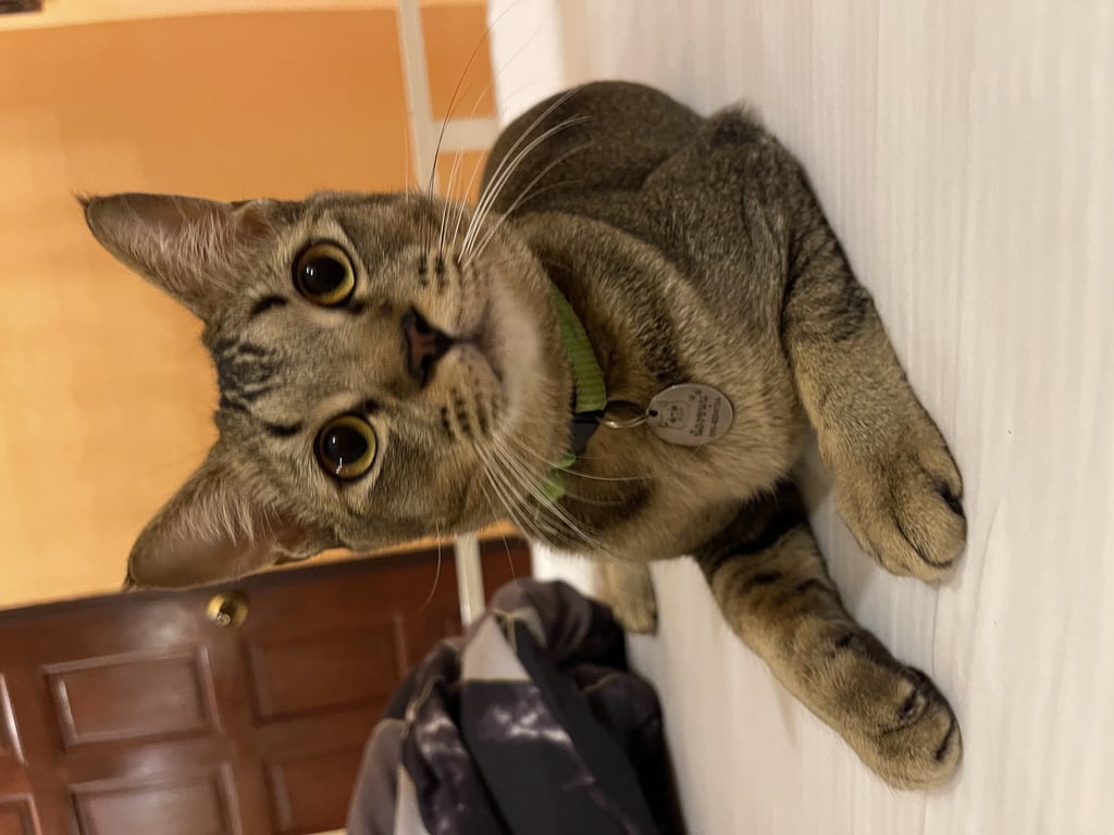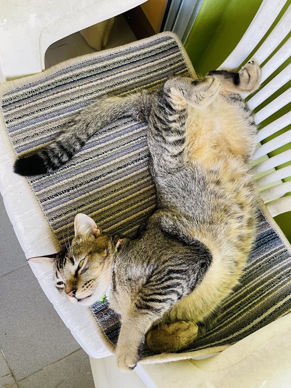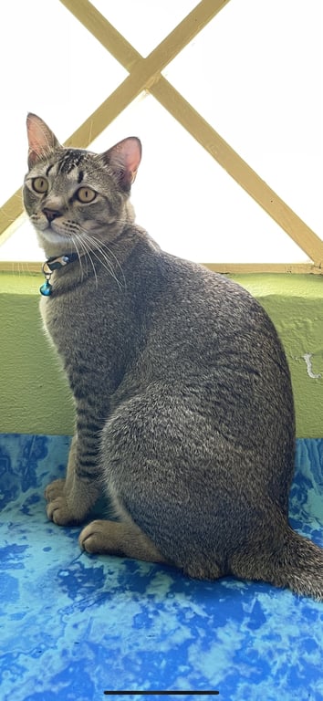 รอยตำหนิ: น้ำหนักประมาณ 5 กกใส่สร้อยคอลายปลาสีพาสเทล กระดิ่งสีเขียว น้องเชืองเรียกชื่อจะขานรับ น้องเสียงจะใหญ่ๆ
