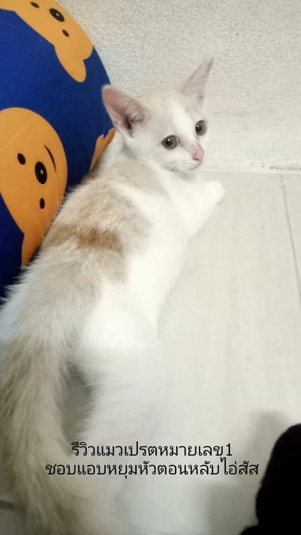 รอยตำหนิ: มีจุดสีน้ำตาลเข้มอยู่ตรงเกือบถึงหางชอบเล่นไม้ตกแมวมากก กินเก่ง ขี้เล่นไม่กลัวคนเท่าไหร่ กลัวเสียงดัง/เสียงรถ
