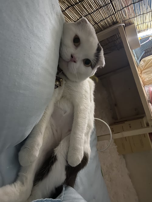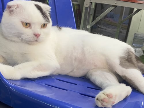 รอยตำหนิ: หางเป็นสีน้ำตาลมีสีขาวเป็นปล้องปลายหางขี้กลัว ไม่ชอบคนแปลกหน้าอุ้ม ไม่เคยกัดแมวหรือกัดคน ตั้งแตาเกิดมาไม่เคยเจอหมา หรือแมวตัวผู้ตัวอื่น นิสัยชอบนอน กลัวเเสงดัง ตอนนี้น้องต้องรักษาอากาีภูมิแพ้กินยาตลอด ขนที่ท้องขา หางจะบางกว่าปกติ