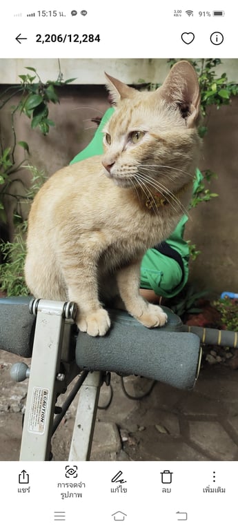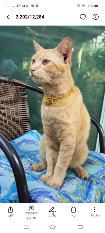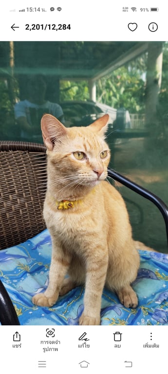 รอยตำหนิ: มีแผลที่คอนิดหน่อย ปลอกคอสีเหลืองขี้อ้อน กลัวเสียงประทัด