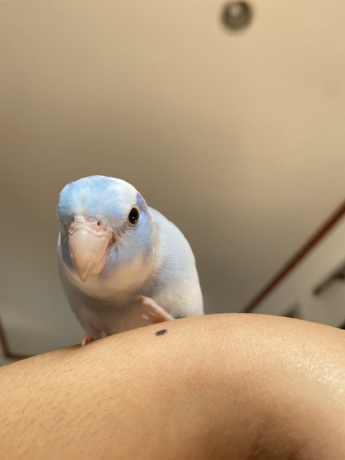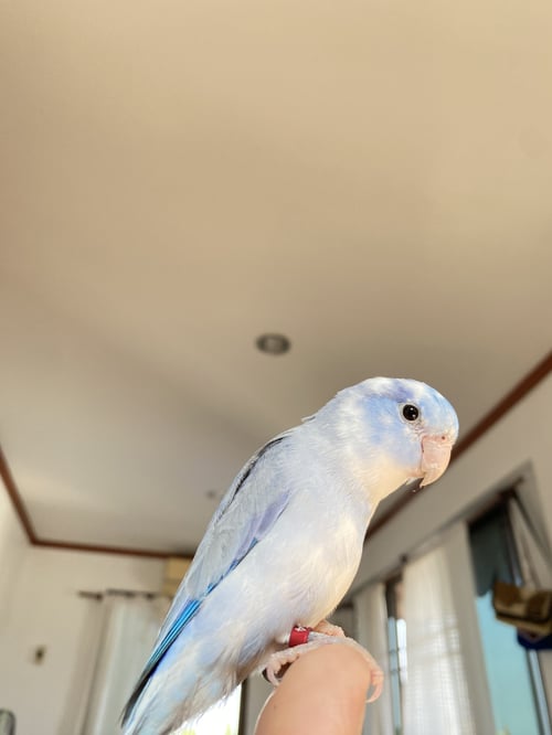 รอยตำหนิ: ที่หัวมีลายด่างสีขาวเหมือนก้อนเมฆบนท้องฟ้าน้องตื่นคนง่าย ขี้ตกใจ เวลามีอะไรแปลกๆ หรือเสียงดัง จะบิน